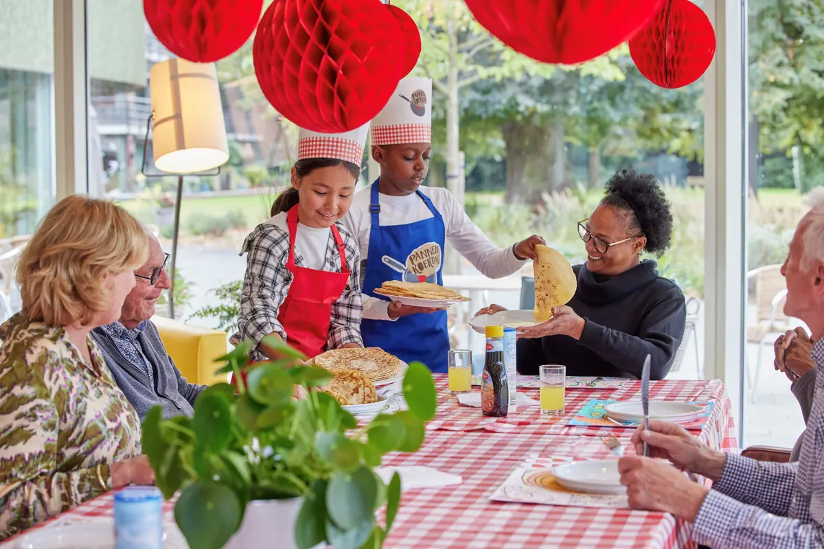 ER DOEN MEER SCHOLEN DAN OOIT MEE: 1826! DIT IS EEN RECORD WAAR WE HEEL TROTS OP ZIJN. DIT BETEKENT DAT ER IN TOTAAL RUIM 180.000 PANNENKOEKEN WORDEN GEBAKKEN VOOR 60.000 OUDEREN!